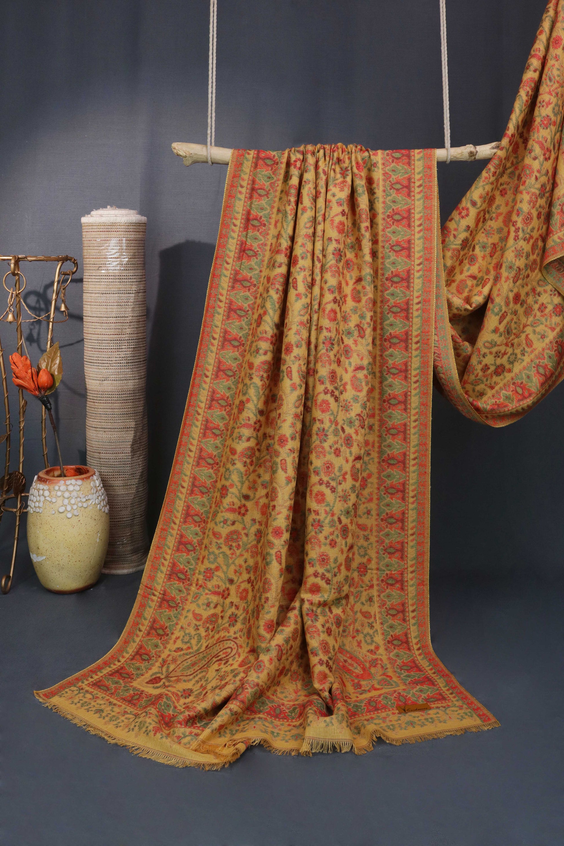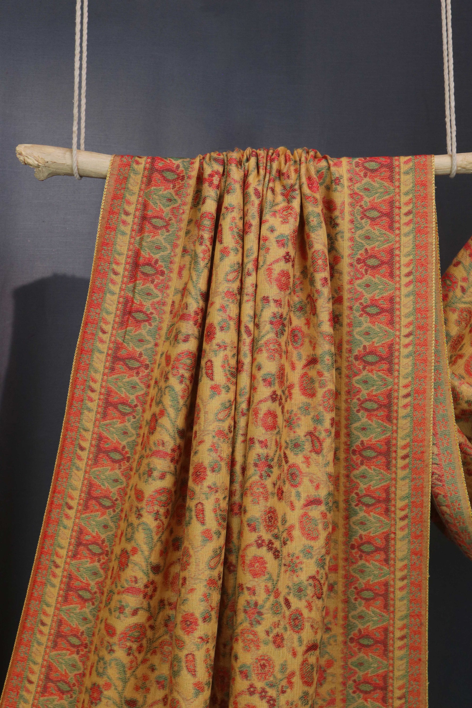 A woolen shawl inspired from traditional paisley and floral butehs woven in kani weaves.Wool Shawls are made in fine counts of wool to ensure softness, comfort and warmth.