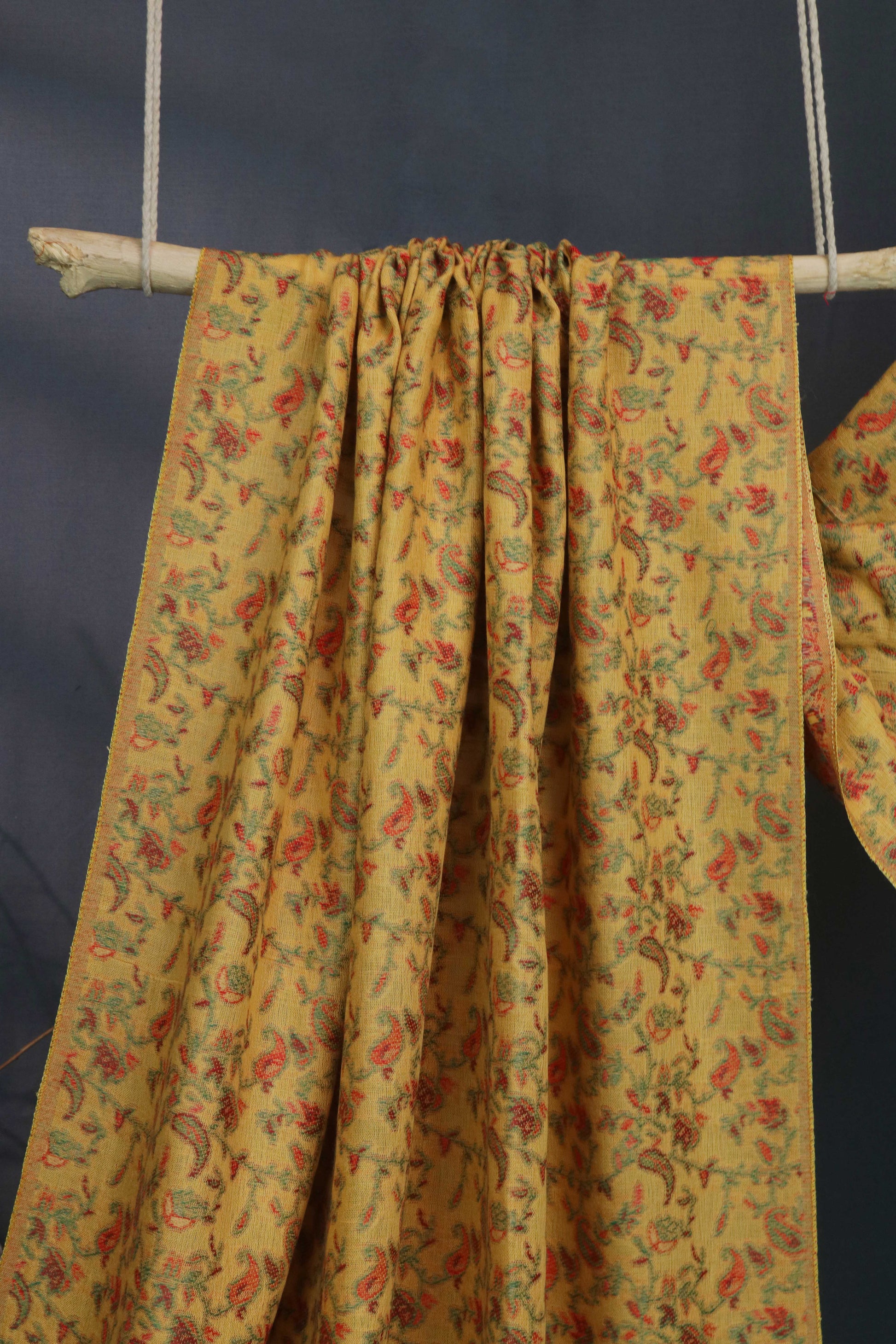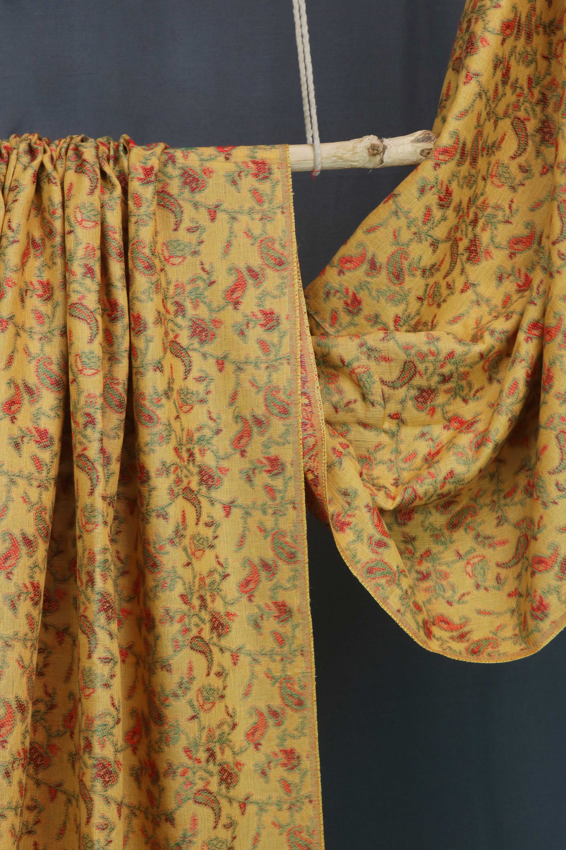 A woolen shawl inspired from traditional paisley and floral butehs woven in kani weaves.Wool Shawls are made in fine counts of wool to ensure softness, comfort and warmth.