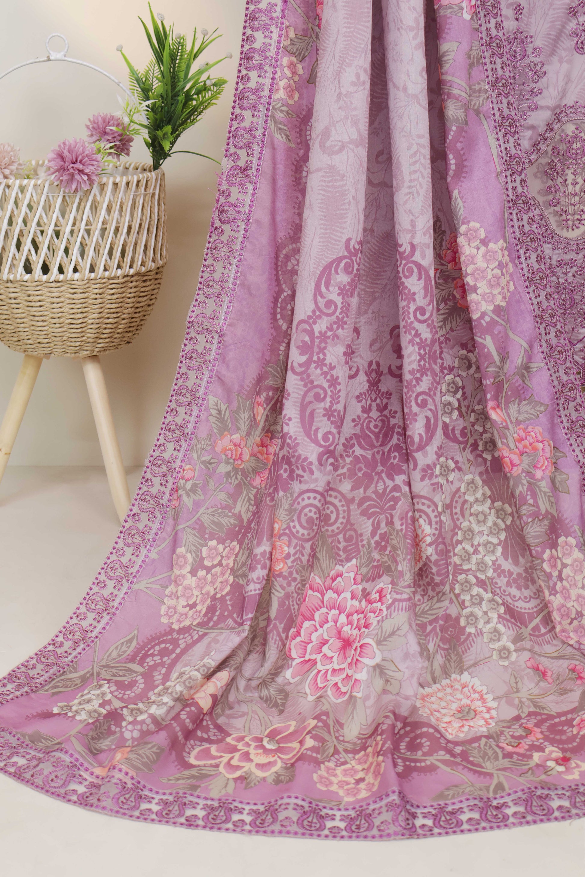 Printed+4 Side Embroidered Duppata