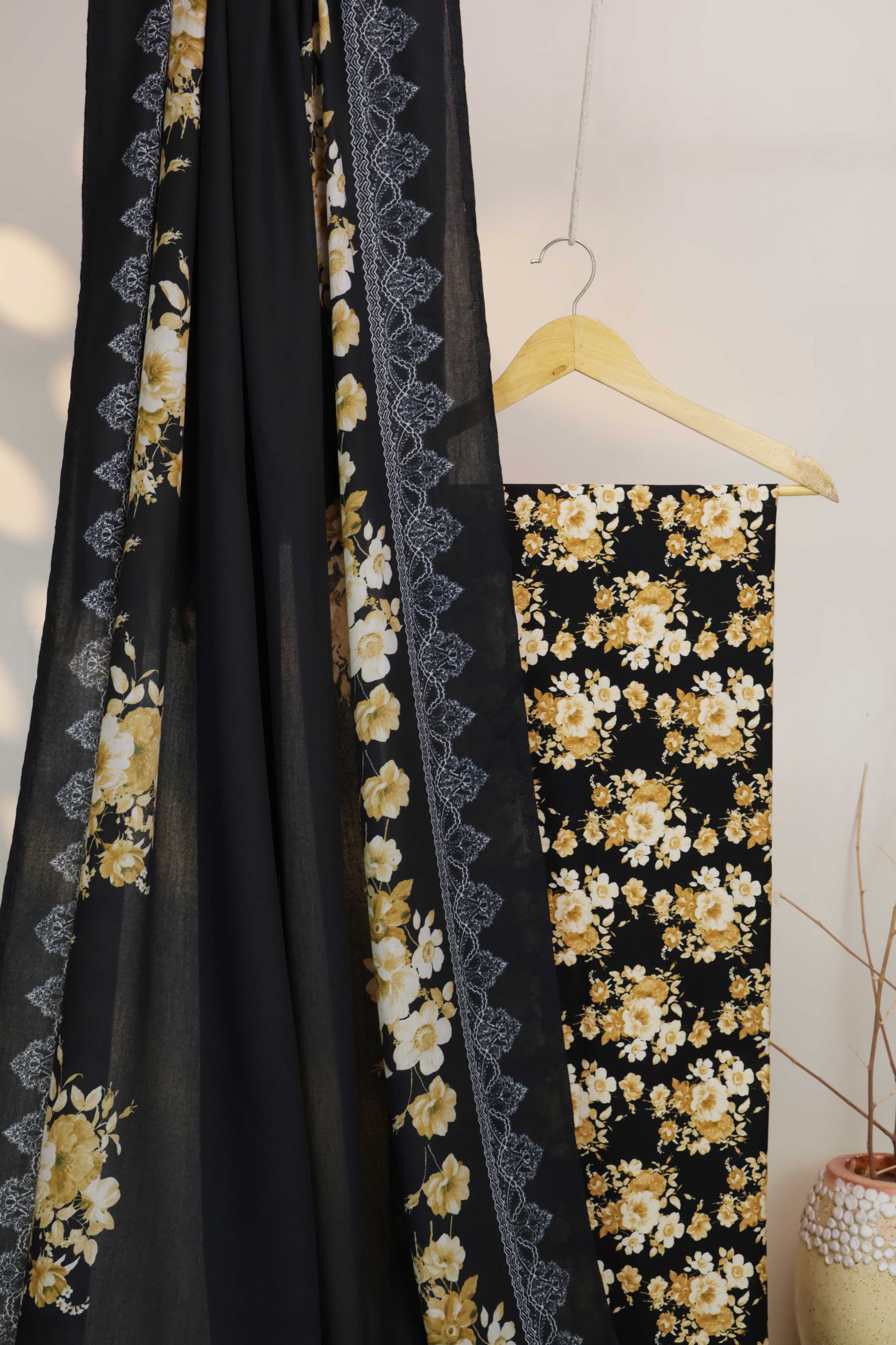 The shirt and shawl shade looks slightly different because of two different material colors.