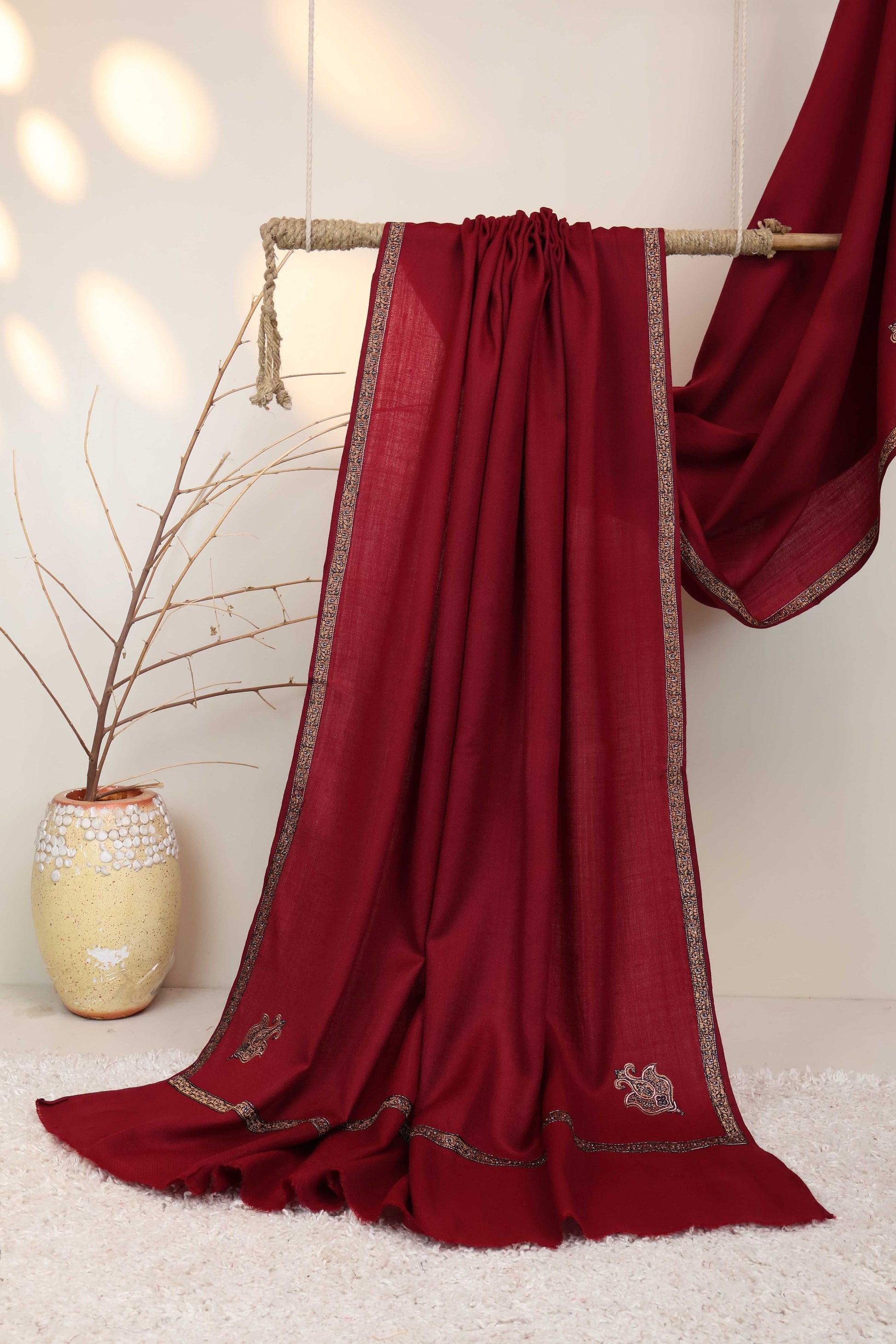 Embroidered Broder Pashmina Mehroon Shawl FG0027New